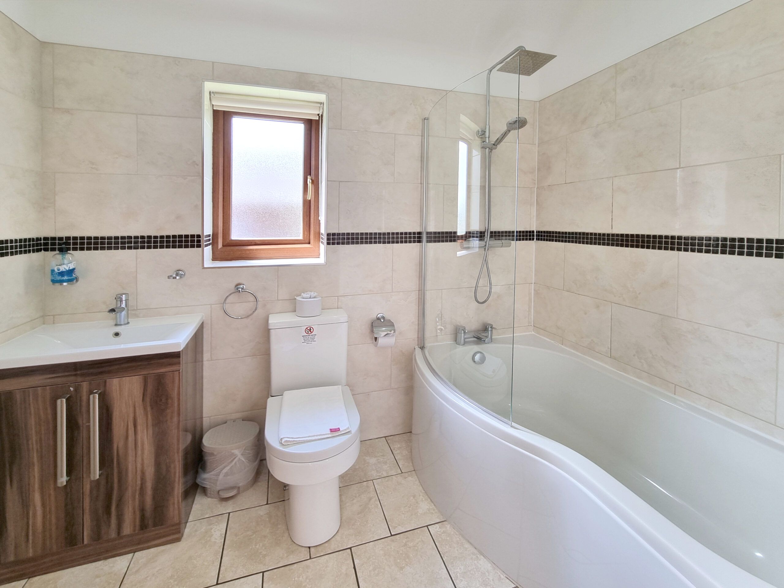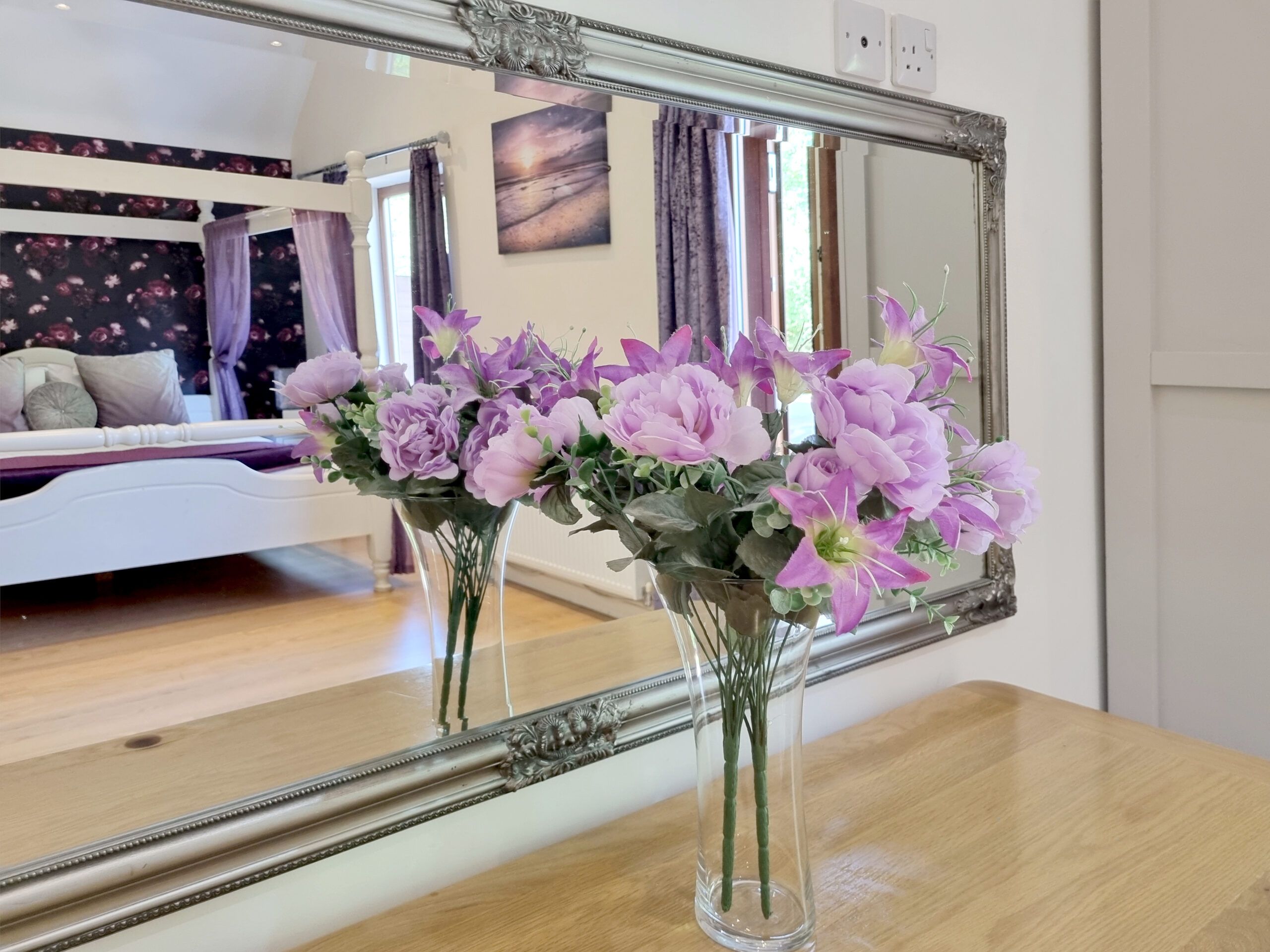 The Bedroom has a Super-King size four poster Bed and an en-suite Bathroom compromising of a Shower over Bath.