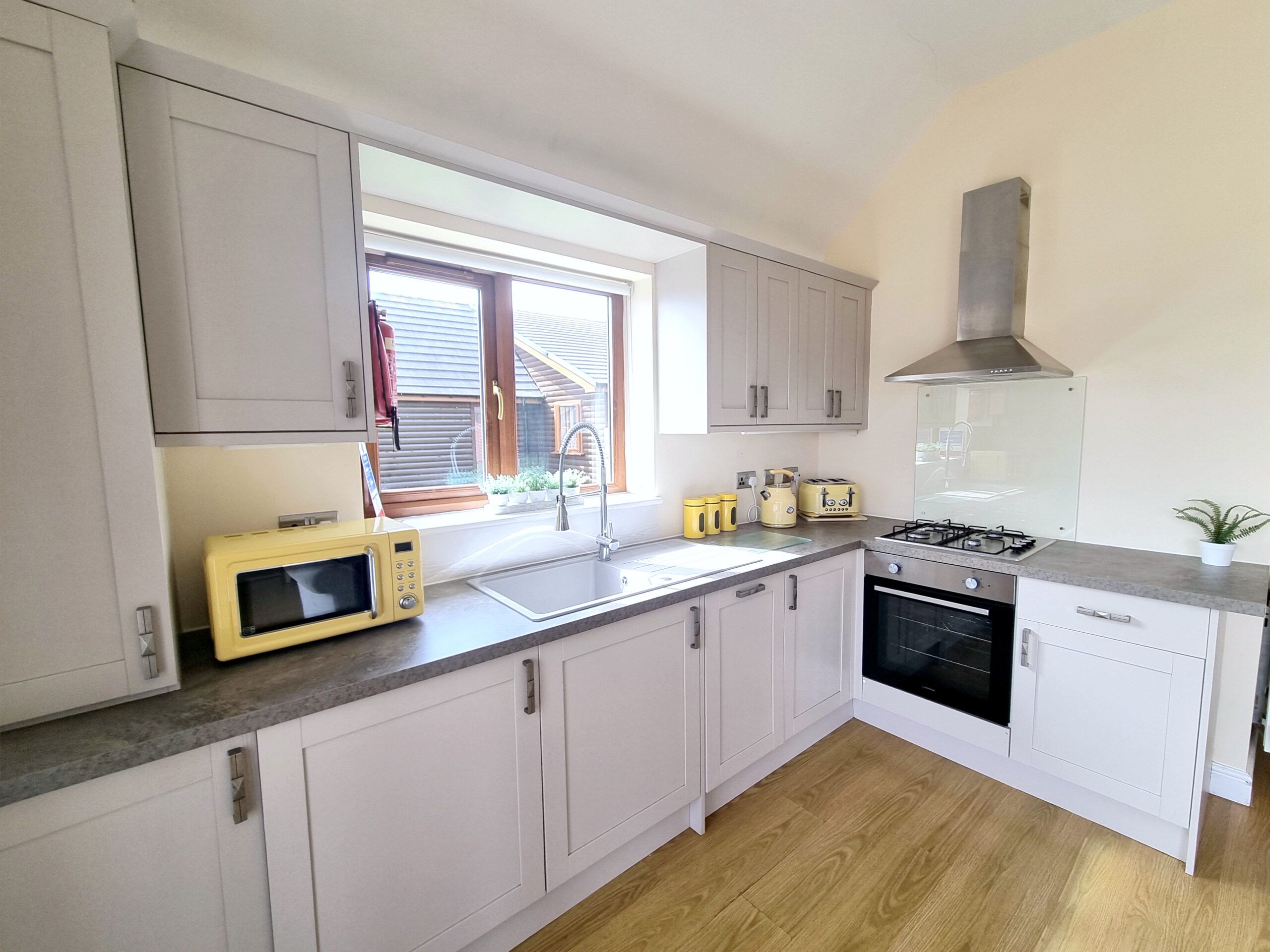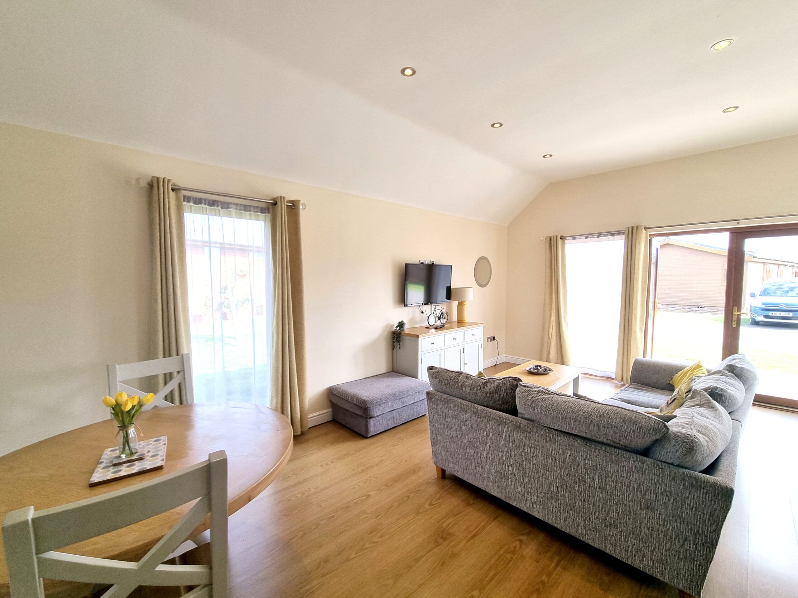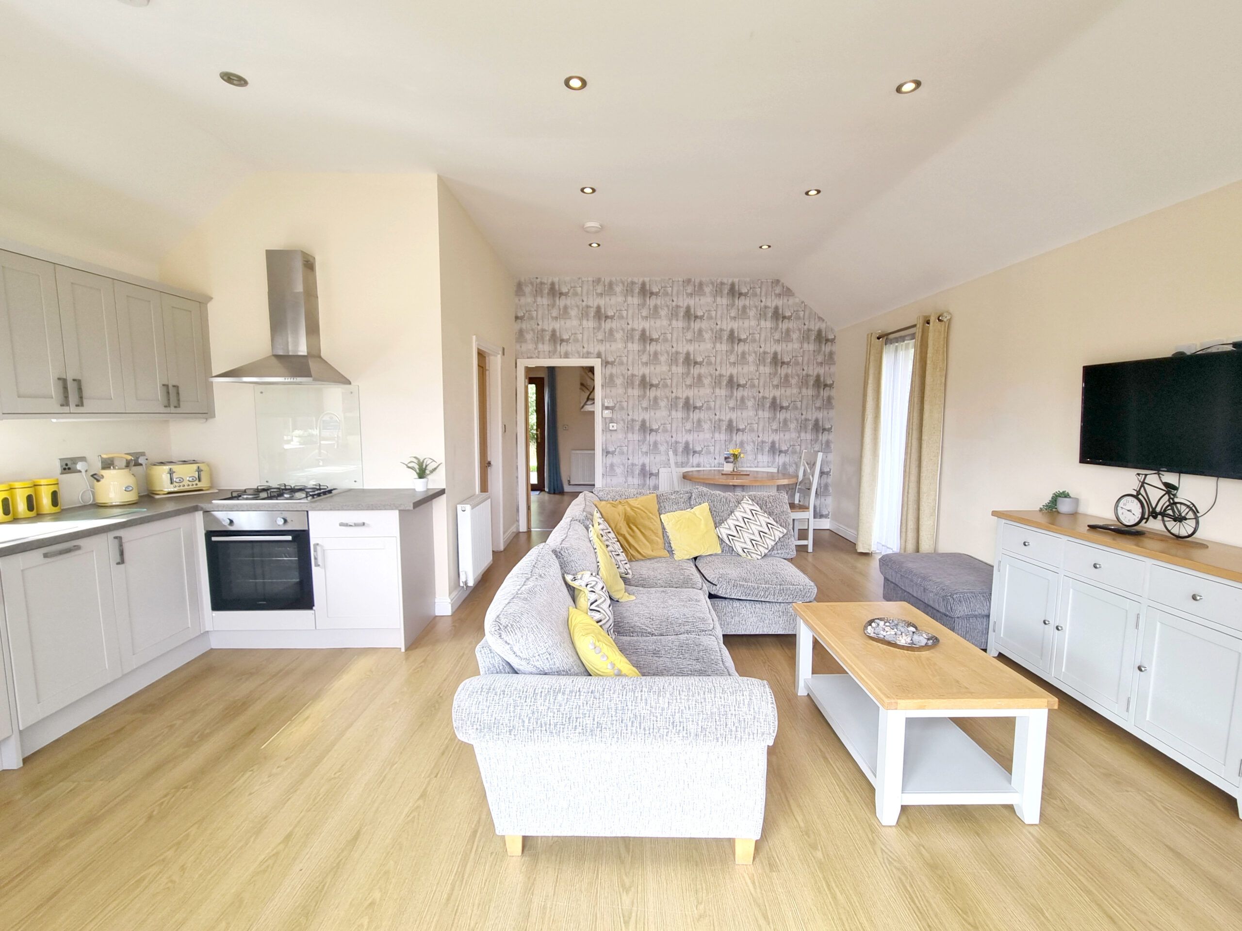 The lodge has an open plan Living, Dining, Kitchen space.